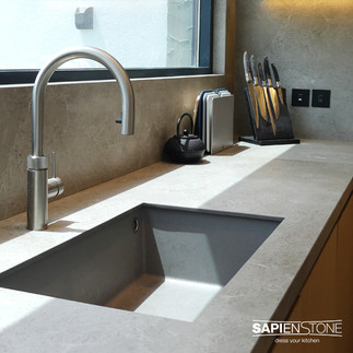 SapienStone Palladium Grey was selected to dress the kitchen of a stunning villa in Jumeirah Luxury Living - Jumeirah Golf Estate, Dubai. The sophisticated shade and natural texture of SapienStone Palladium Grey brings a wholesome warmth to this modern kitchen built by Clear Water Dubai.